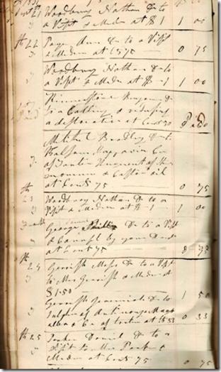 From Carolyn Hurst, two ledgers, dating from 1822-1832, belonging to Dr. Job Wilson (the first owner of the Beck & Bellucci building), detailing his accounts (and being true to the tradition of physicians’ handwriting, is barely legible) along with various notes and newspapers showing the wear and abuse of being found in walls (during a period of renovation) subject to the occupation of mice;