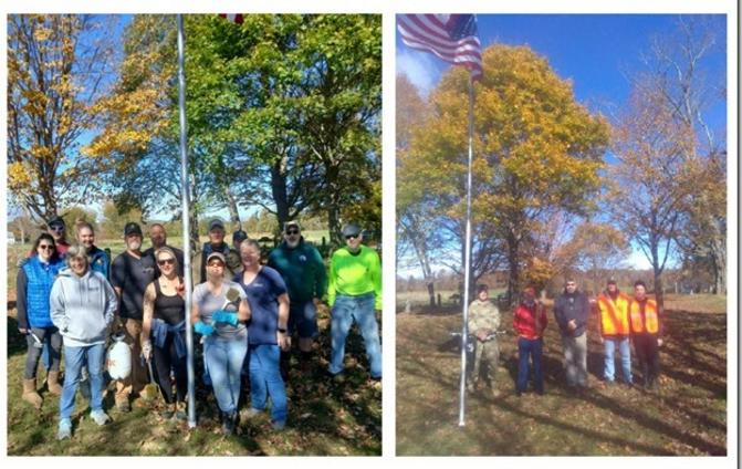 News affecting the Society: On Saturday, October 18th, Father Roger Sargent marshaled his forces to clean headstones in the Webster Place Cemetery, erect a flag pole with a solar powered light (for those who know their flag protocol, when flying an American flag 24 hours a day, it must be lit at night), and clearing weeds at the stairs to the Stevenstown Fort marker. The volunteer group was made up of representatives from the VFW Post 1698, the Tilton American Legion Post 49 with members of the Auxiliary and Sons of the American Legion, and the USMC League Detachment 542 (Manchester area). This occurred with little advance notice to the Society, so no members were able to attend and be of assistance—at least this year.